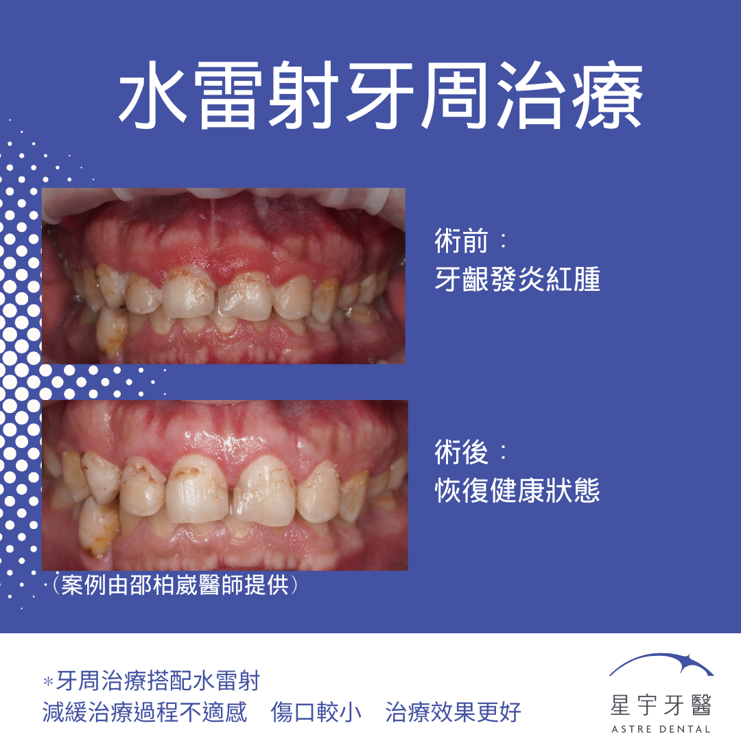 水雷射的治療過程溫和、無刀、恢復快,能有效改善牙齦紅腫、出血與口氣問題。