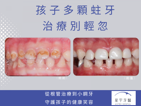 從根管治療到小鋼牙,守護孩子的健康笑容 今天要跟大家分享的是一位因為牙痛而來到星宇看診的小朋友。 小小年紀的他卻已經有多顆蛀牙,甚至嚴重到必須 抽神經、套牙套 才能保住牙齒。 經過我們兒童專科詹醫師的細心...